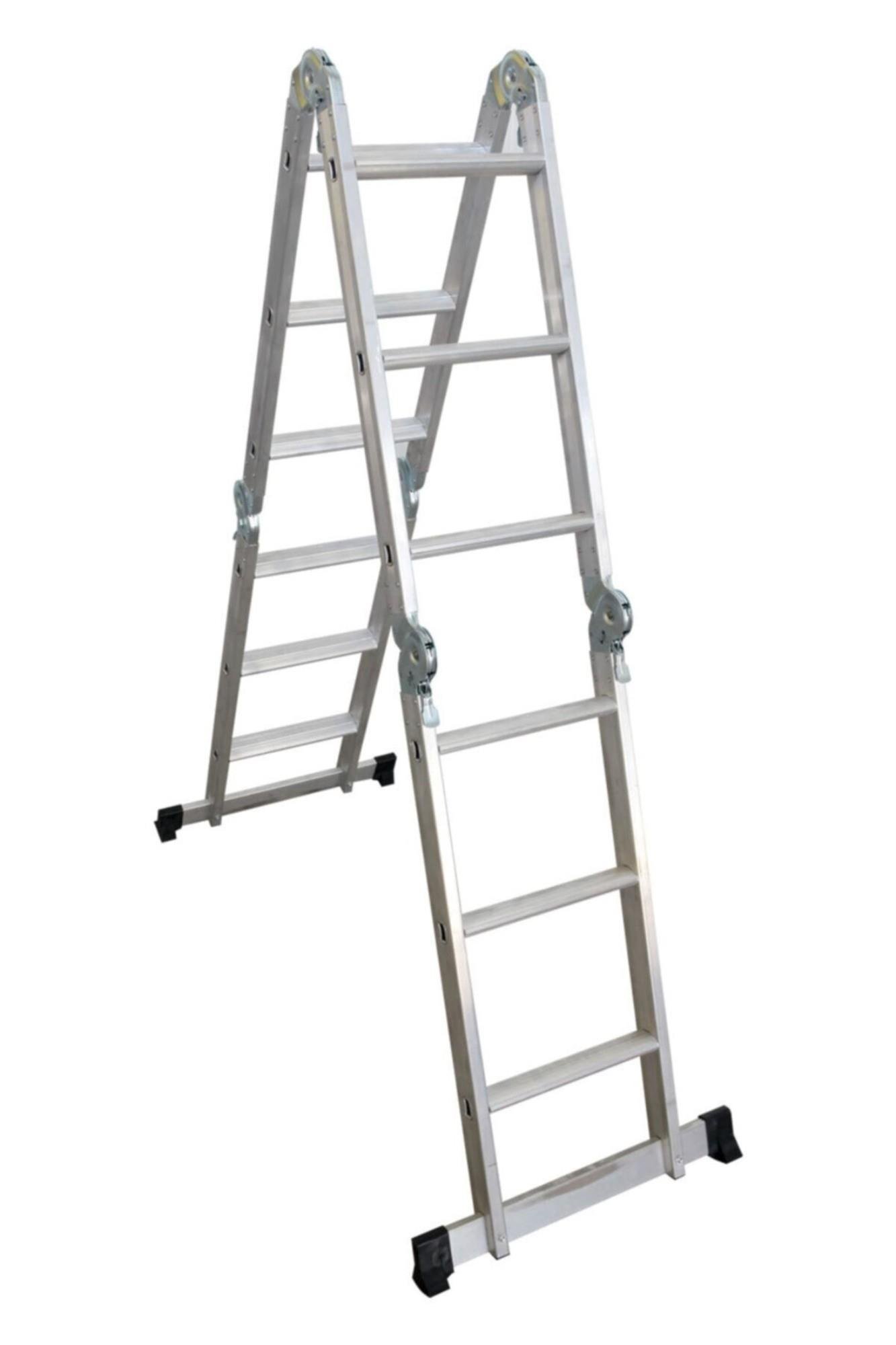 basamak akrobat merdiven - 260 cm -28 cm genişlik -1.7 mm alüminyum malzeme -kapalı halde ölçüleri: 158 cm x 38cm x 28cm -17,60 kg ağırlığında -max taşıma kapasitesi 150 kg -1. ; Kalite malzeme Çok amaçlı merdivenler farklı pozisyonlarda kullanıma imkan veren, çok fonksiyonlu ürünlerdir. ; Platform konumu geniş bir çalışma yüzeyi sunarken, a konumunda çatal merdiven olarak kullanılmaktadır. ; Düz dayamalı konumda ise birçok portatif merdivenin ulaşamadığı yüksekliklere ulaşılabilmektedir. ; Kilitli çelik mafsalları fonksiyonelliği arttırırken, denge ayakları tabanda güvenli bir çalışma ortamı sunmaktadır.;