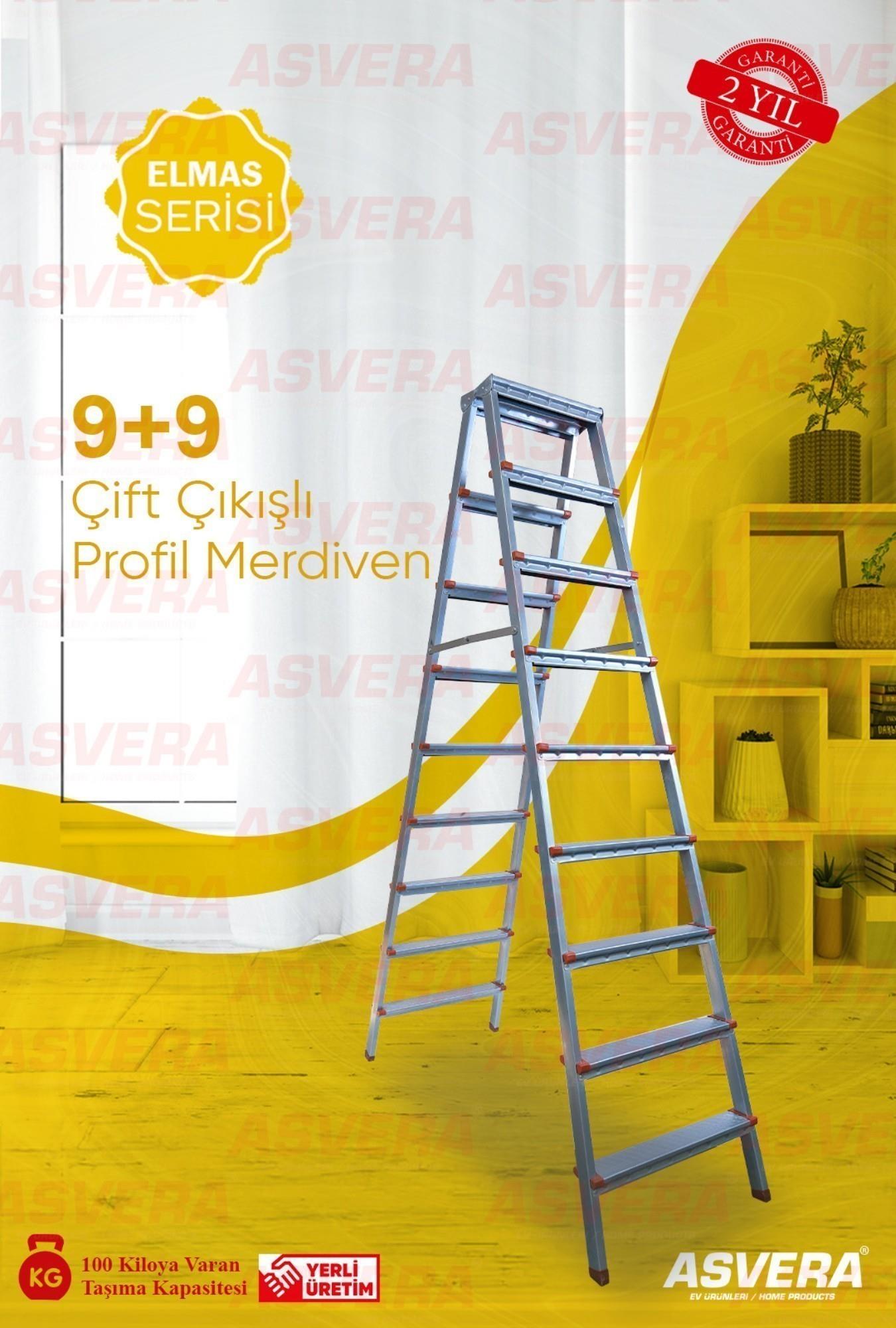1 Adet Elmas Serisi 9+9 Basamaklı Çift Taraflı Merdiven