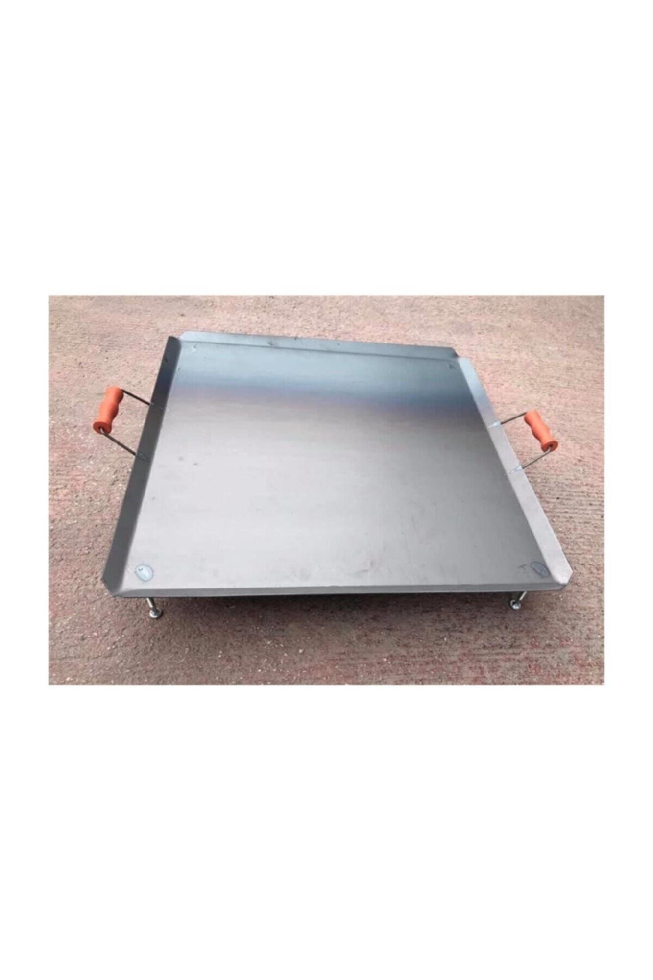 Ocak üstü kare ekmek yufka ve gözleme sacı; ; *** set üstü kare saç. ***; Kalın saç üretimi olup tüm unlu mamüllerinizi evinizde 4lü ocak üzerinde kolay kullanılabilmektedir.; Portatif ayaklı olup sökülüp takılabilmektedir.; Ayak bölümü ayrı olarak ambalaj içerisindedir.; Ürünümüz yanma ve yapısmalara karsıda kalın saçlardan üretimi yapılmaktadır.; 4lü ocak üzerinde büyük gözleri kısık küçük gözlerini biraz fazla açıp eşit miktarda ates ayarlayabilirsiniz.; Ürünümüzün üzeri bombeli olup kenarları kulpludur.; 50cm x 50cm genişliğindedir.; Aynı zamanda dısarda altında odun çalı çırpı ile yakıp mangalınızı da kolaylıkla yapma imkanı sunmaktadır.; Kullanım sonrası soguduktan sonra yıkayıp küf ve paslara karsı koruma için sıvı yag ile yaglı olarak bırakınız.; ; ; ;
